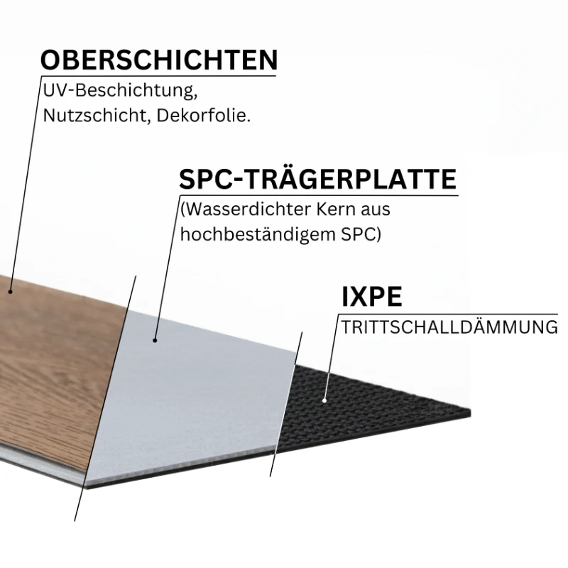 Während andere bei der Dämmung sparen, bekommst du bei uns das Beste vom Besten: In unserem Klick-Vinyl ist die hochwertigste 1 mm IXPE Trittschalldämmung am Markt bereits fest integriert – für spürbar mehr Komfort und hörbar weniger Lärm.