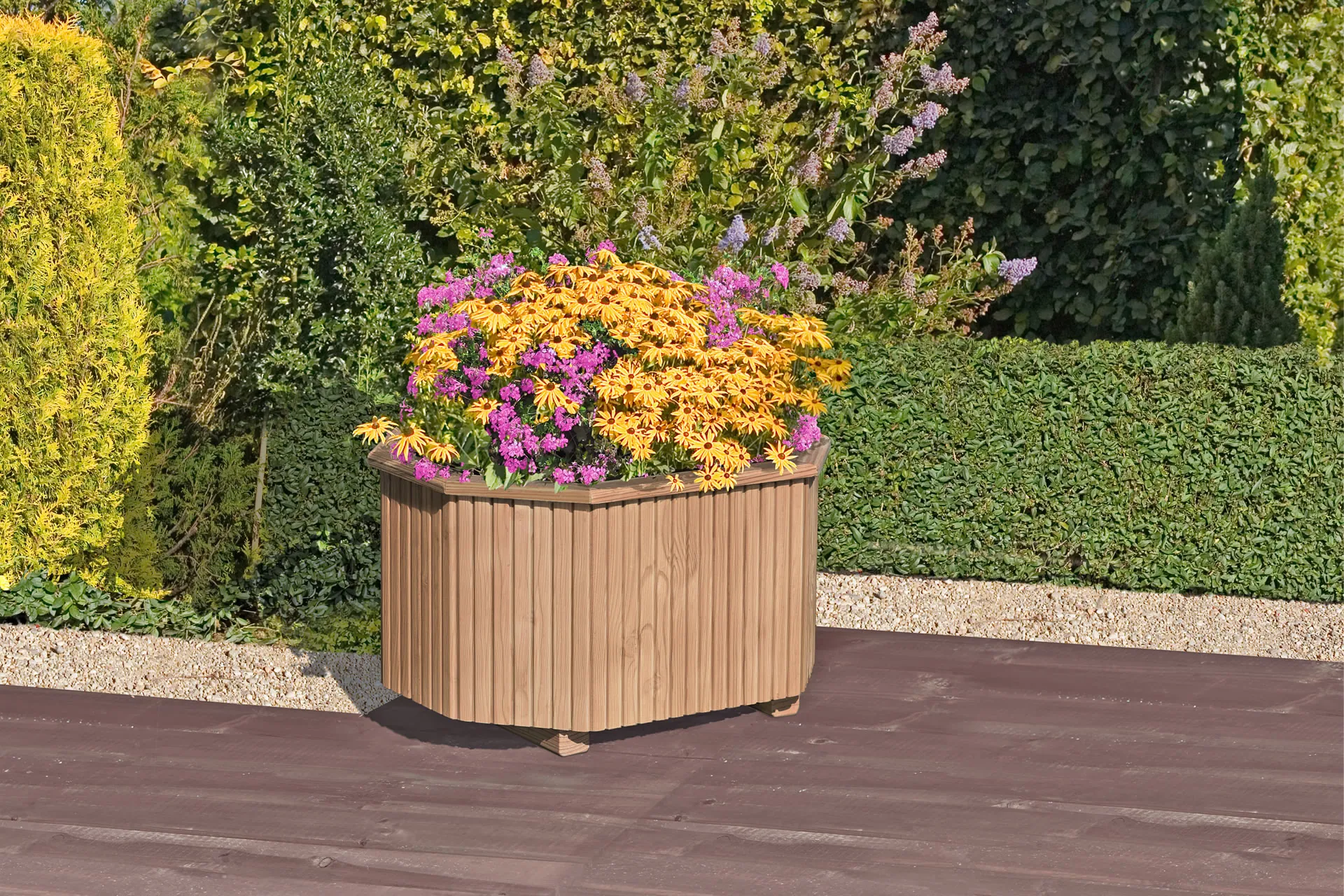 Pflanzkasten in Lärche 40 x 40 x 30, fertig montiert, Wandung aus 20 x 120 mm starken gehobelten Brettern, incl. Boden und ausgelegt mit Pflanzfolie