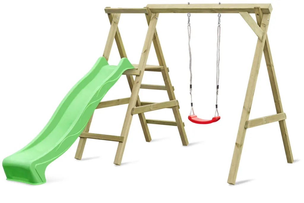 Die Schaukeln der BASIC-Reihe bestehen aus robusten Kanthölzern, die zusätzliche Stabilität bieten – perfekt für ausgelassene Tobereien und Spielspaß. Die BASIC Schaukel 4.1 wird aus hochwertiger Kiefer hergestellt und im modernen Kesseldruckverfahren imprägniert, was sie wetterfest und besonders langlebig macht.