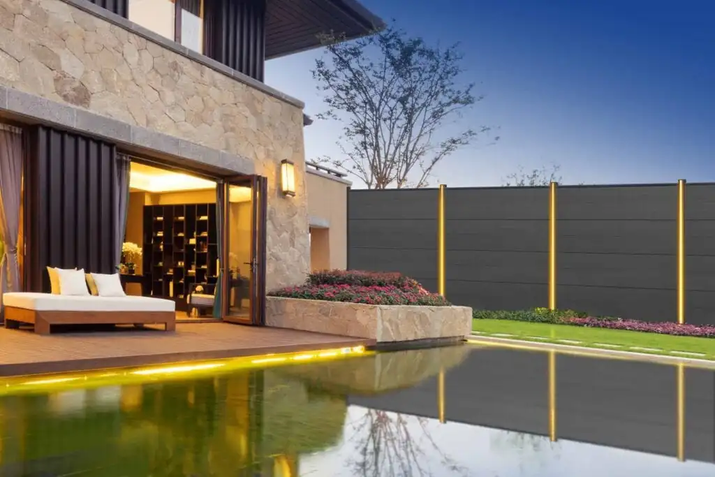 Die EASY-FENCE Serie wurde im Jahr 2022 um weitere Highlights ergänzt. Ab sofort beleuchten innovative und ansprechende LED-Lichtleisten in den Pfosten der EASY-FENCE Alu-Pfosten den wunderschönen Sichtschutzzaun auch bei Nacht. Für den Betrieb der LED-Leisten ist der LED-Trafo zwingend erforderlich.