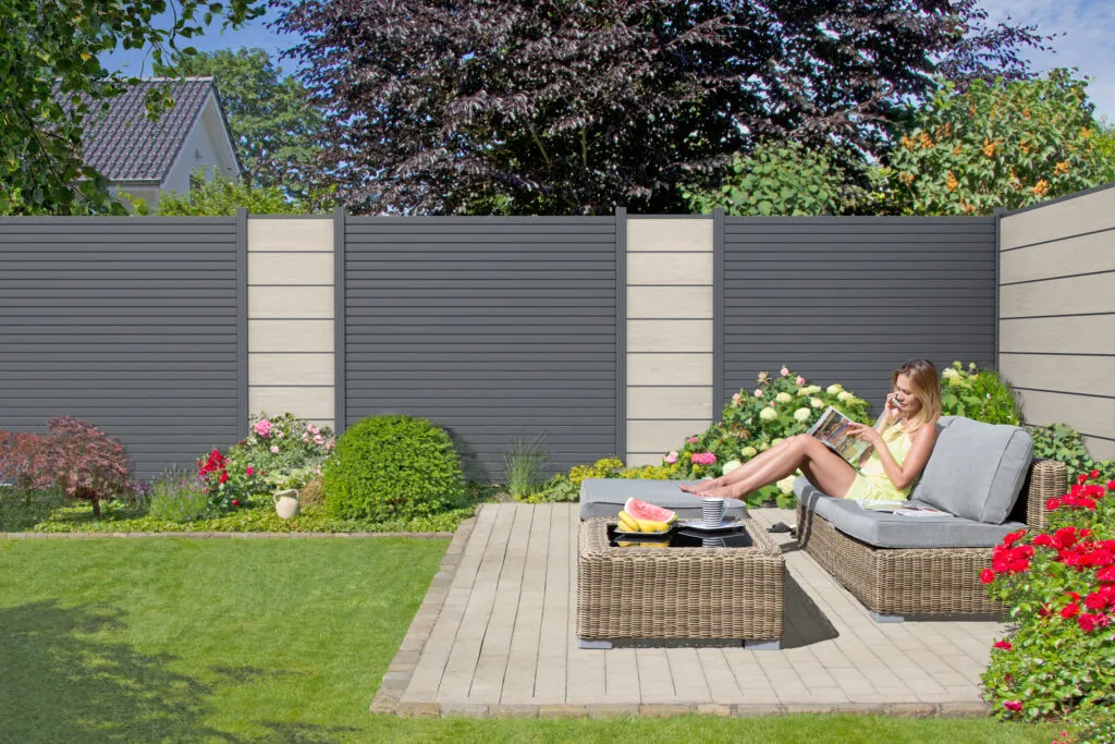 Die moderne und pflegeleichte Sichtschutz-Serie Aluminium Rhombus setzt neue optische Trends. Der geradlinige und trendige Aluminium Rhombuszaun vereint luftige Trennung mit einer beidseitig ansprechenden Optik. Die stabilen Aluminumleisten weisen softe und elegante Kantenrundungen auf. Die Betonung der Horizontalen steht im Fokus. Kleine Spalten lassen die gegenüberliegende Situation nur erahnen. Eine unsichtbare Befestigung sorgt für ein klares Design. Die Elemente mit den trapezförmigen 20 x 60 mm Aluminium Profilen eignen sich perfekt für moderne Gestaltungen von Gärten, als Abtrennungen oder als offene Barriere. Der riesige Vorteil dieser Zäune liegt auf der Hand - die moderne Optik eines Rhombus-Sichtschutzzauns wird in der Kombination mit dem pflegeleichten Aluminium zum langlebigen Sichschutzzaun - ein Traum für den heimischen Garten.