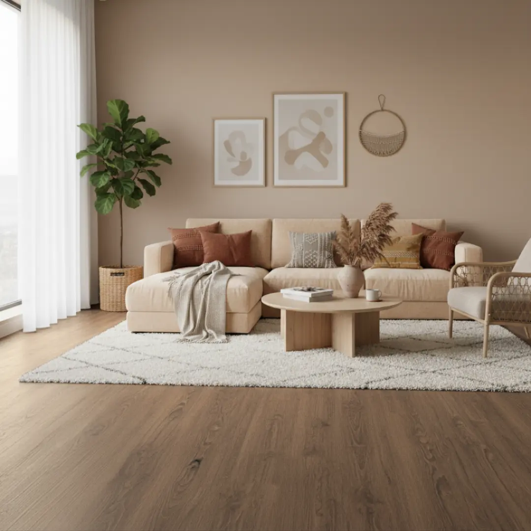 Hol dir mediterrane Behaglichkeit in dein Zuhause mit dem Designboden „Andalusien“. Die Kombination aus satten, warmbraunen Eichen-Nuancen und sanfter Maserung verleiht deinen Räumen eine wohnliche, natürliche Ausstrahlung – perfekt für gemütliche Wohnkonzepte mit modernem Charakter. Das harmonische Farbspiel erinnert an das Licht und die Wärme südspanischer Landhäuser und bringt stilvolle Tiefe in jeden Raum.