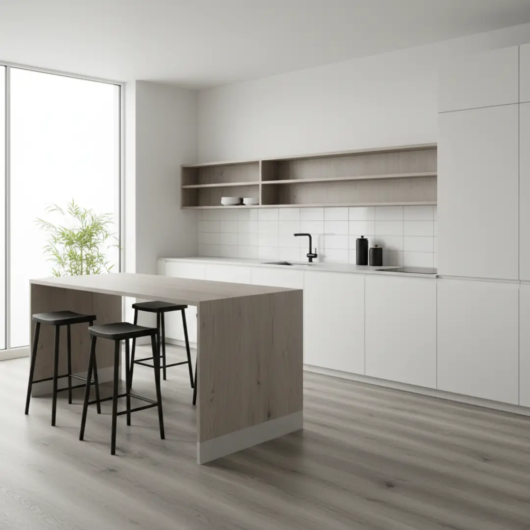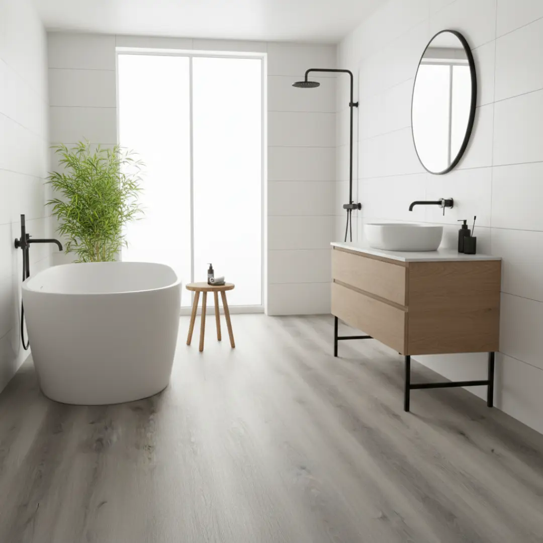 Ein moderner, kühler Farbton mit sanfter Maserung und feinen Grauabstufungen. Ideal für klare, lichtdurchflutete Räume und zeitlose Wohnkonzepte mit skandinavischem oder urbanem Charakter.