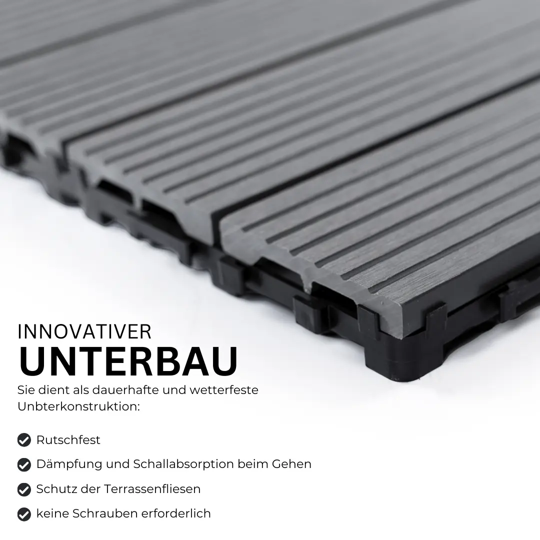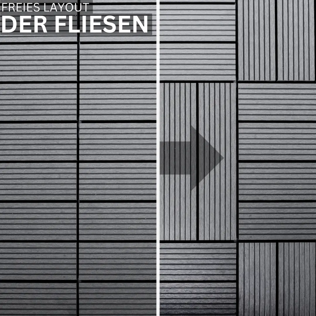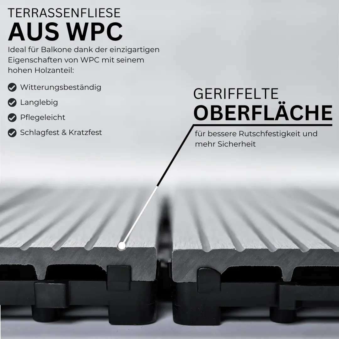 Verwandeln Sie Ihre Terrasse oder Ihren Balkon mit diesen hochwertigen WPC-Fliesen in eine moderne und langlebige Wohlfühloase.