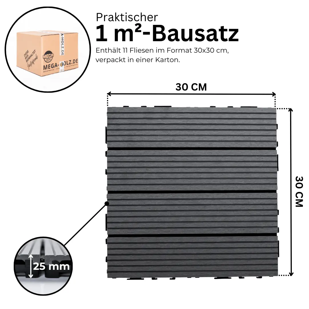 WPC Fliesen 30x30 cm – 11 Stück – ca. 1 m²